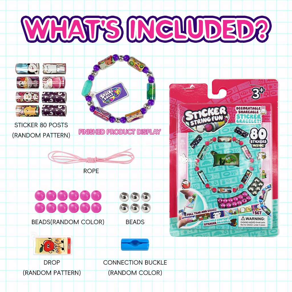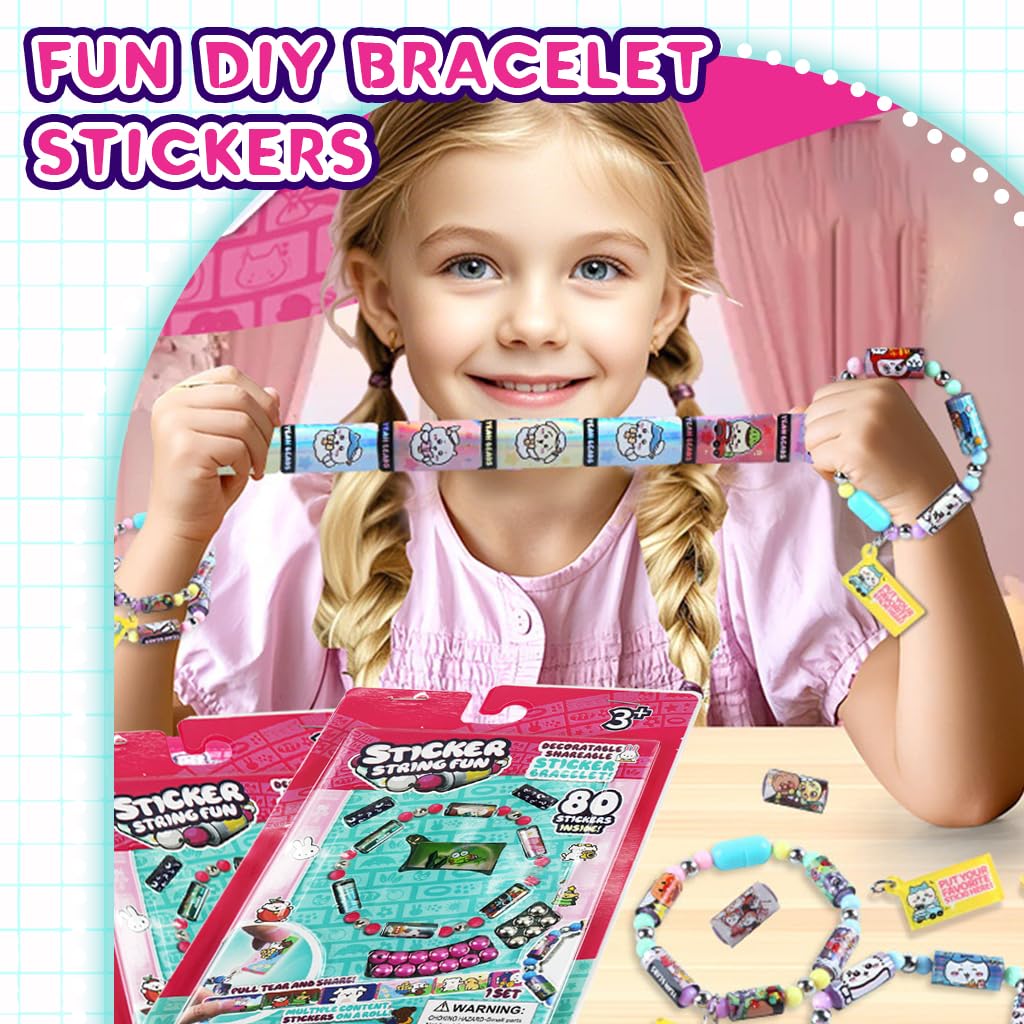 Kit Bracelet Sticker String Fun – 80 Stickers Inclus | Jeu Créatif DIY pour Enfants 3+ | Perles + Stickers + Accessoires