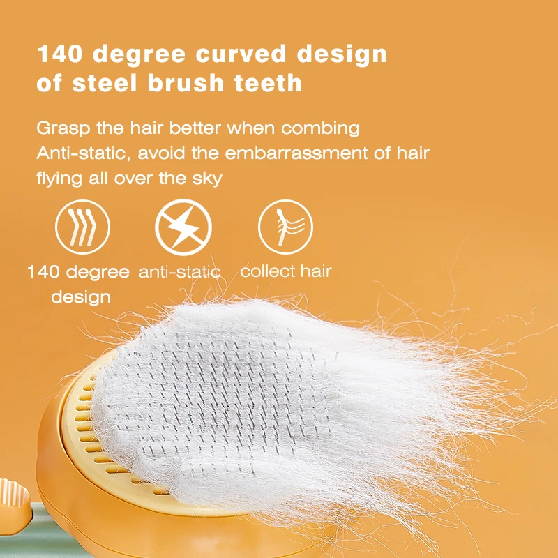 Offrez à votre animal de compagnie un moment de détente tout en prenant soin de son pelage avec cette brosse auto-nettoyante innovante, conçue pour faciliter le toilettage au quotidien. Que vous ayez un chat angora, un golden retriever ou un petit chien à poil ras, cette brosse s’adapte à tous les types de poils et garantit un brossage sans douleur ni stress.