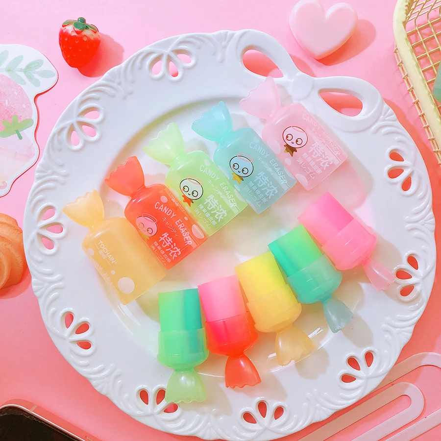 Ajoutez une touche sucrée à votre trousse avec ces adorables gommes en forme de bonbons 🍭💖.