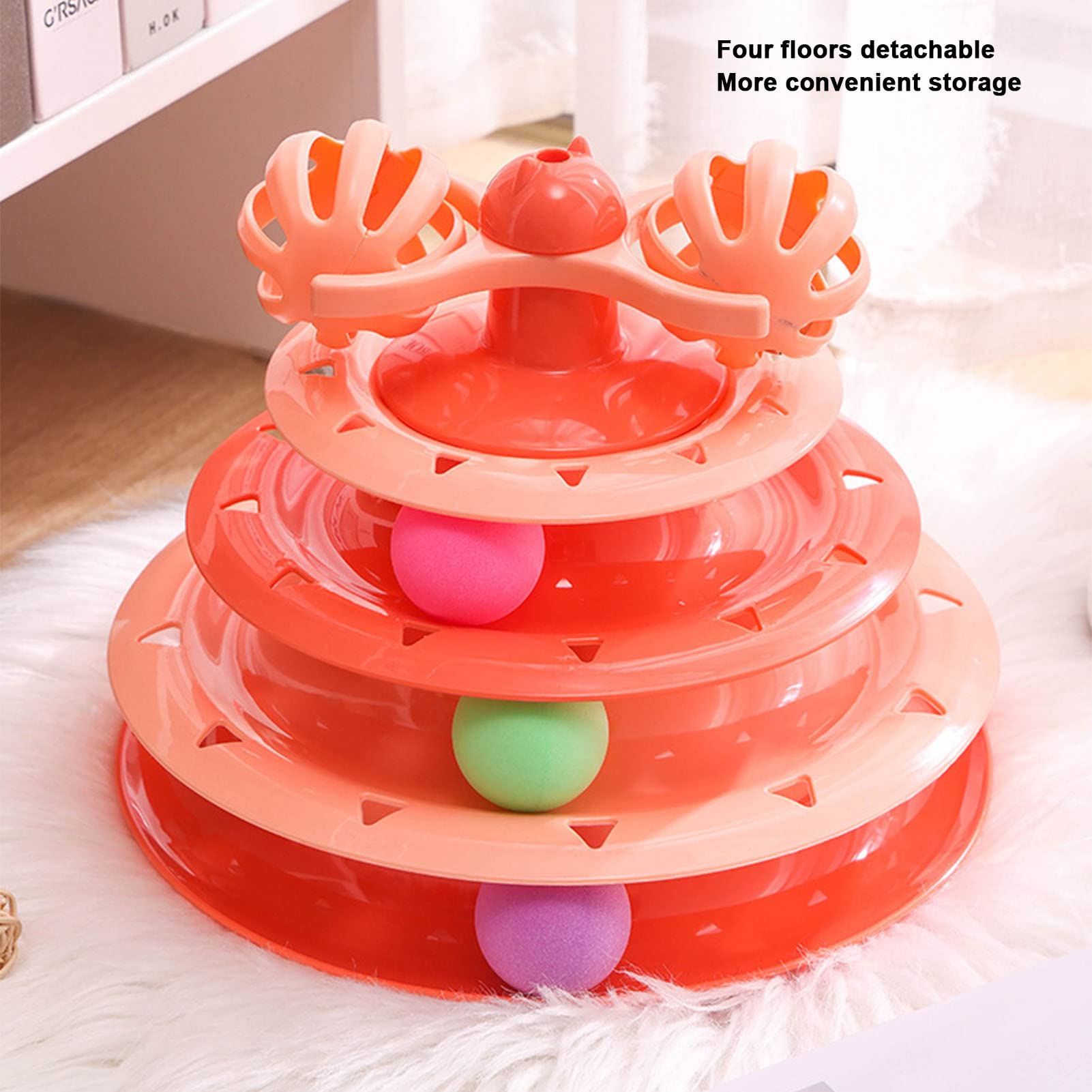 Chaque niveau comprend une boule colorée qui tourne librement dans la piste lorsque le chat la touche, ce qui éveille sa curiosité et favorise l’activité physique.