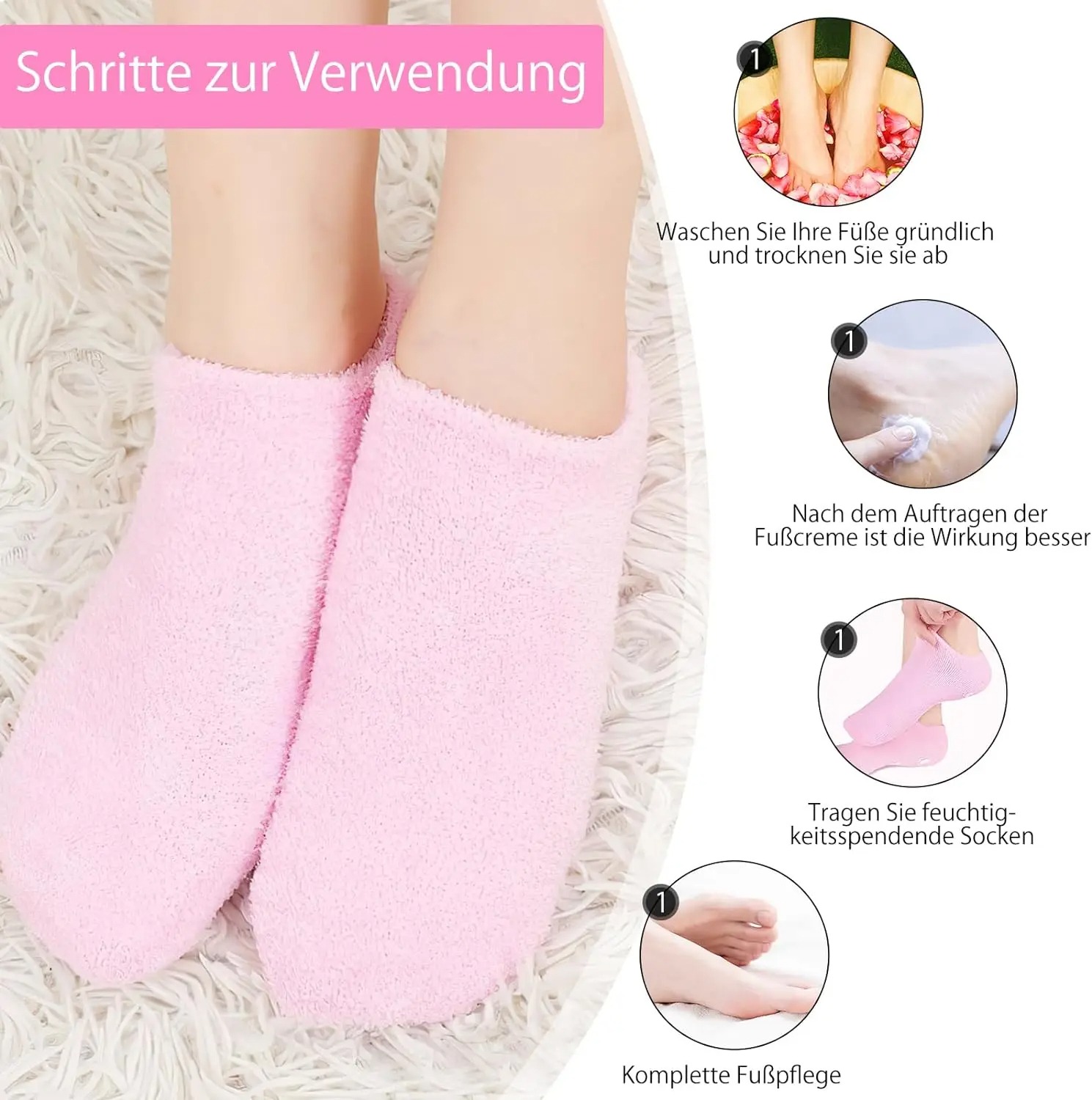 • Hydratation intensive : L’intérieur des chaussettes contient un gel enrichi en huiles essentielles et vitamine E pour nourrir et hydrater la peau en profondeur.