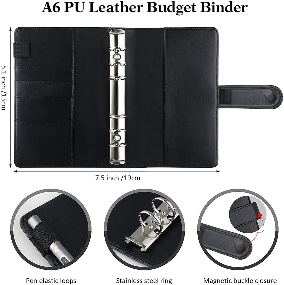 Classeur budgétaire – A6 – Classeur Réutilisable avec 10 Pochettes Zippées pour Gestion des Dépenses