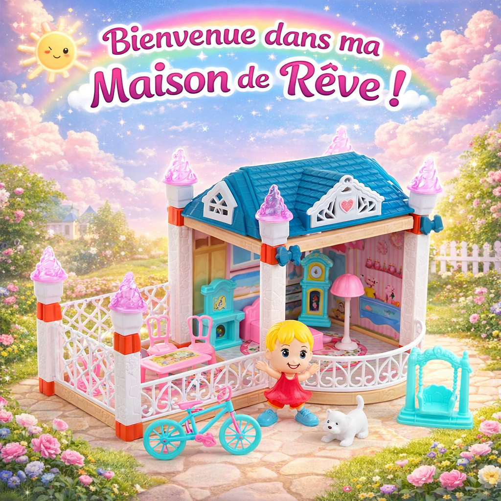 Offrez un monde féerique à votre enfant avec cette Maison de Rêve complète, idéale pour des heures de jeu créatif ! Conçue pour stimuler l’imagination, cette charmante maison miniature offre un espace de jeu riche en couleurs, avec de nombreux accessoires réalistes.