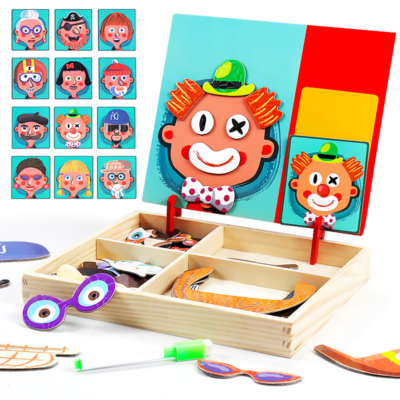• 🧲 Pièces aimantées à assembler pour reproduire les visages rigolos selon les cartes modèles