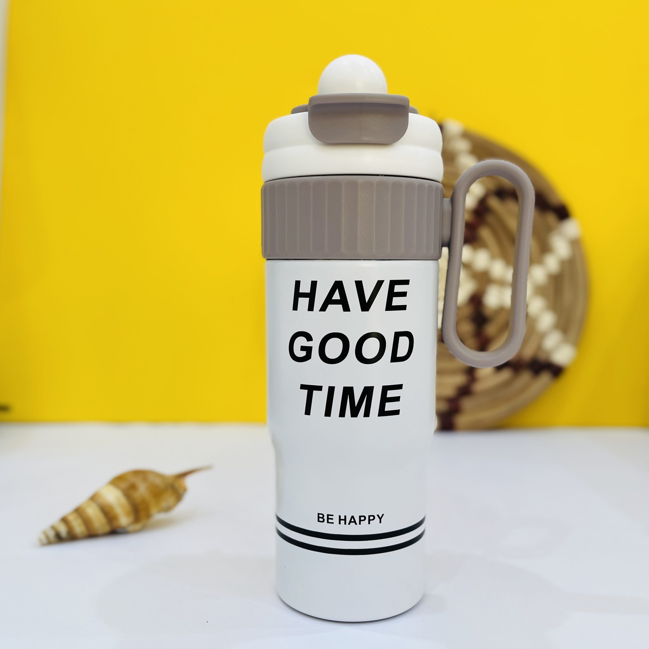 Avec son message “HAVE GOOD TIME – BE HAPPY”, cette bouteille d’eau en acier inoxydable 🧊🔥 vous accompagne au quotidien pour garder vos boissons chaudes ou froides à la température idéale.