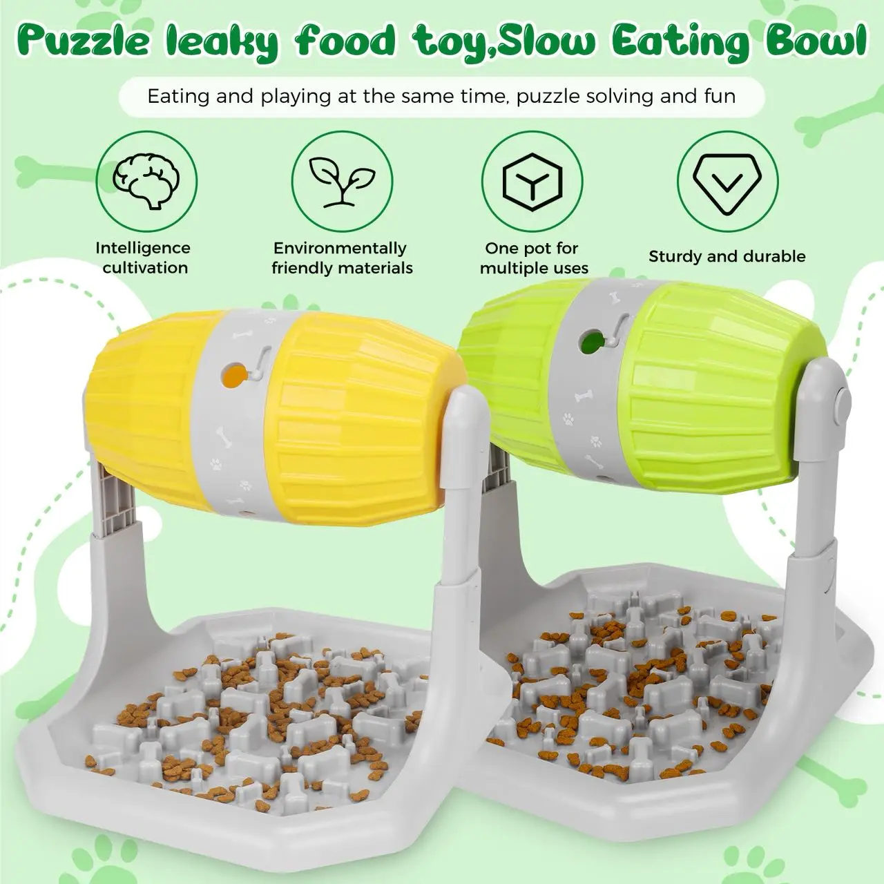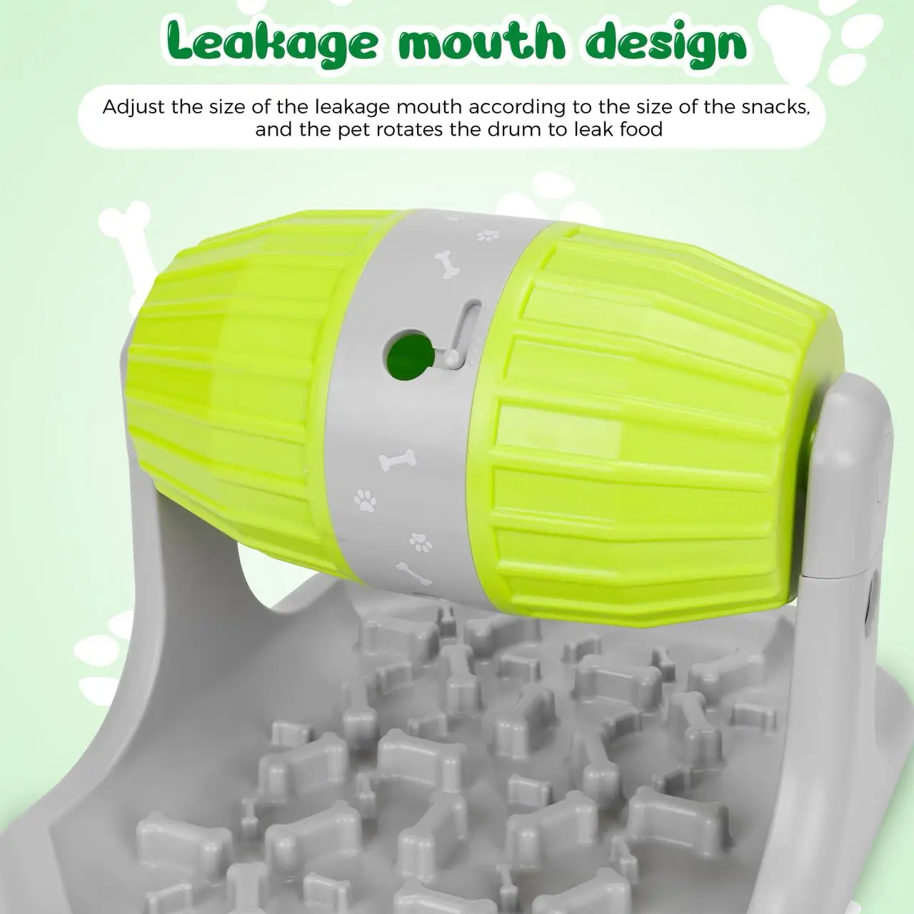 Fini les repas avalés en quelques secondes ! Ce distributeur interactif pour chien transforme chaque repas en véritable défi mental. Votre compagnon devra faire rouler le tambour rotatif pour libérer les croquettes, qui tomberont sur une plaque de distribution à reliefs, rendant l’accès à la nourriture encore plus stimulant.