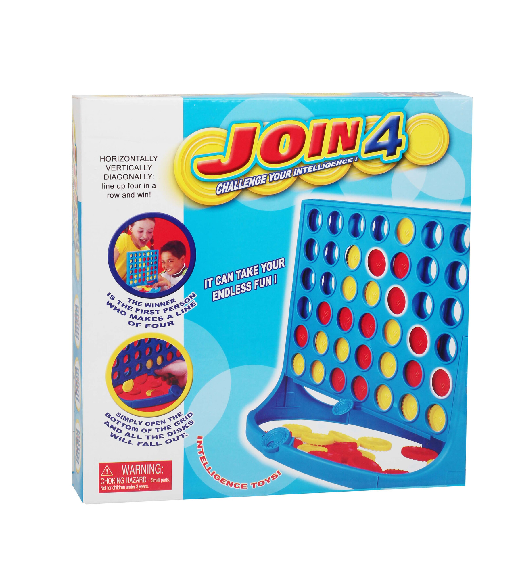 • Contenu : Une grille verticale sur pieds stables, un set complet de jetons rouges et un set de jetons jaunes.