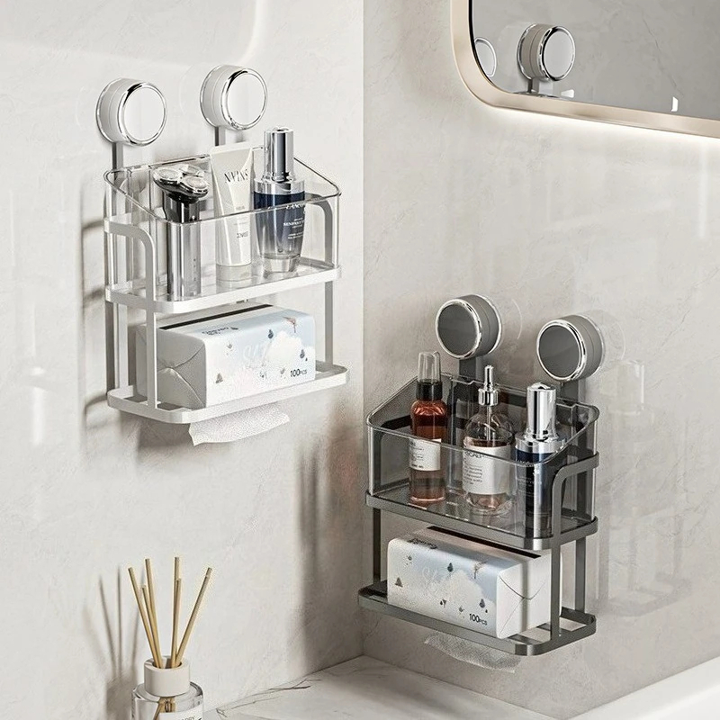 Optimisez votre espace avec cette étagère murale multifonction, idéale pour la salle de bain, la cuisine ou les toilettes. Son design élégant combine structure en métal et boîte transparente, avec une installation facile sans perçage grâce aux ventouses puissantes. Robuste et résistante à l’humidité, elle vous permet de ranger vos produits de soin, épices, serviettes ou papiers.