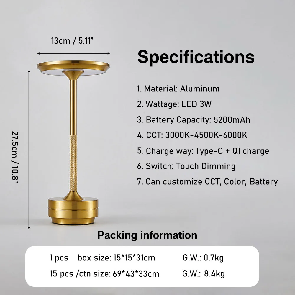 • lampe de table sans fil,lampe tactile rechargeable,éclairage led design,lampe de chevet dorée,décoration maison luxe,lampe restaurant sans fil,lampe portable aluminium,idée cadeau déco,ambiance ramadan,veilleuse adulte Livraison sur casablanca