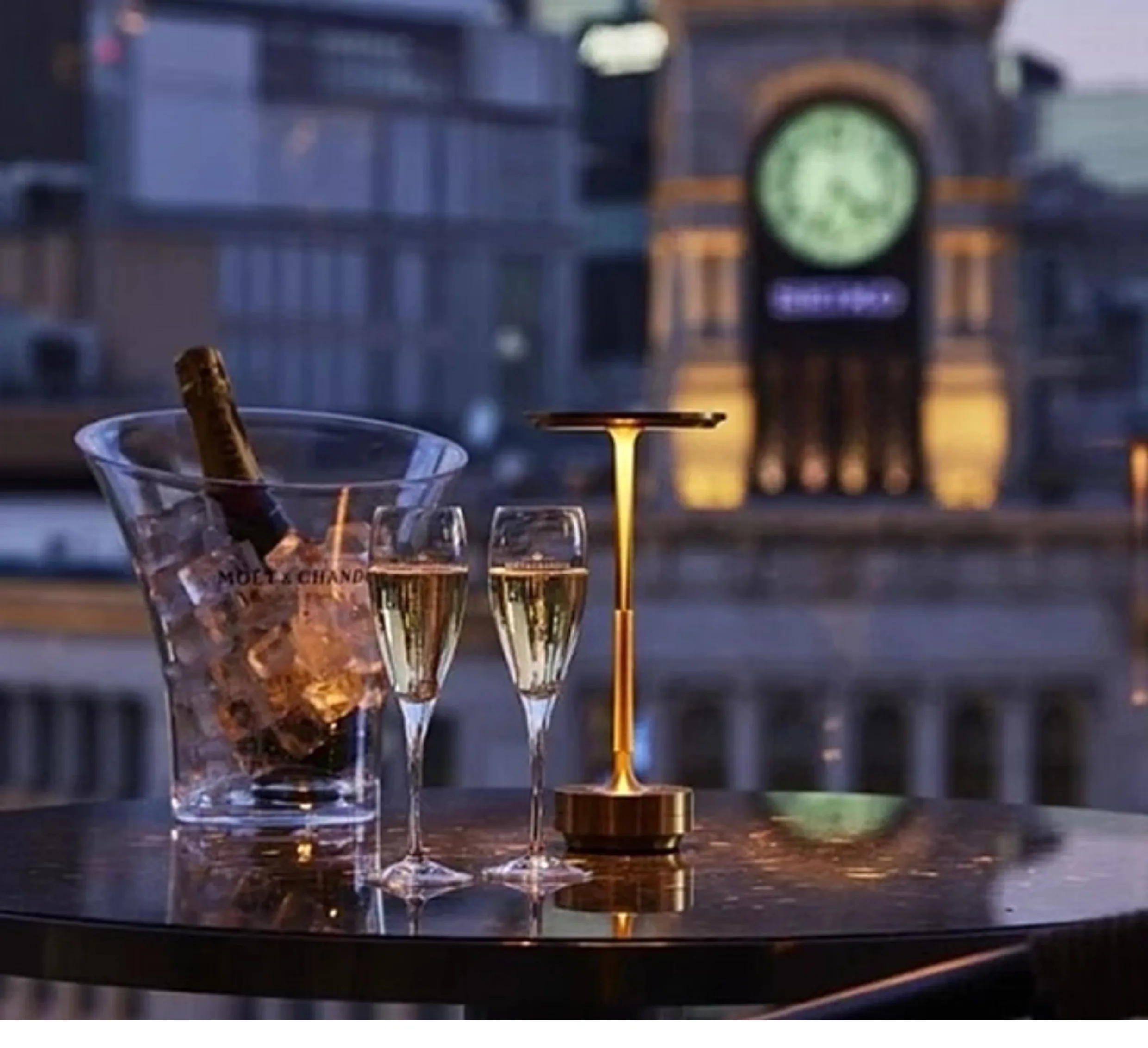 • lampe de table sans fil,lampe tactile rechargeable,éclairage led design,lampe de chevet dorée,décoration maison luxe,lampe restaurant sans fil,lampe portable aluminium,idée cadeau déco,ambiance ramadan,veilleuse adulte Possibilité d'achat en Boutique