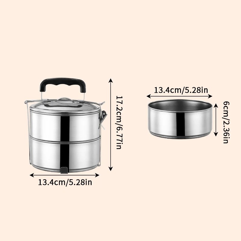 Boîte à Déjeuner Empilable 2 Niveaux – Acier Inoxydable, Portable & Isotherme – 13.4 cm