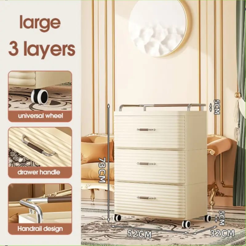 Alliez style, mobilité et praticité avec ce meuble de rangement élégant à 3 tiroirs sur roulettes !