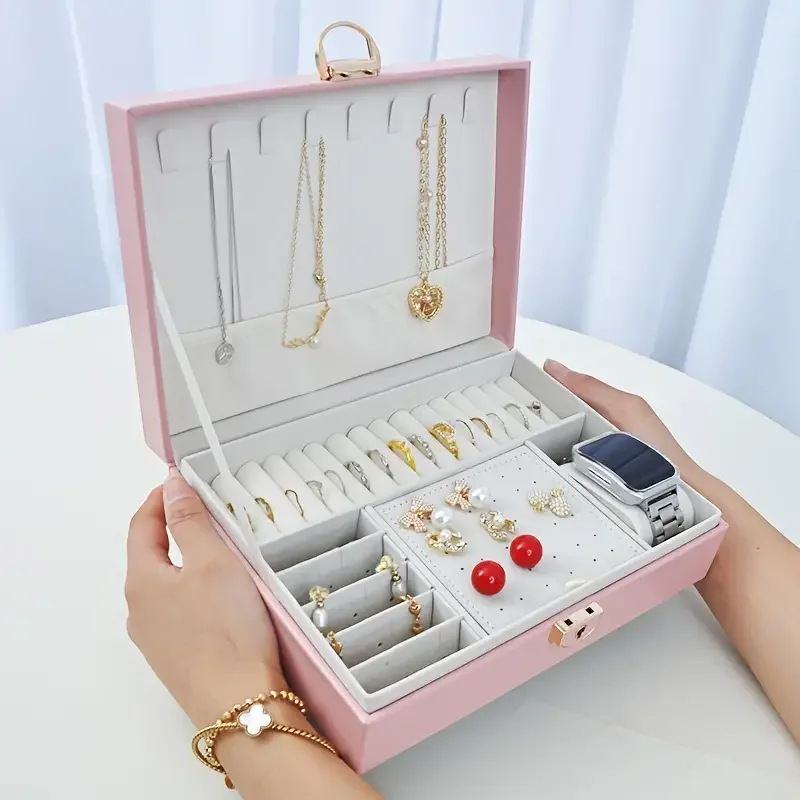 Boîte à Bijoux Élégante avec Compartiments – Rangement Chic & Sécurisé | Rose Clair ou Blanc