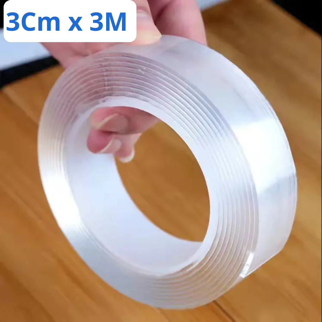 Ruban Adhésif Nano Tape Double Face – Transparent, Lavable et Réutilisable (3m x 3cm) – Fixation Ultra Forte