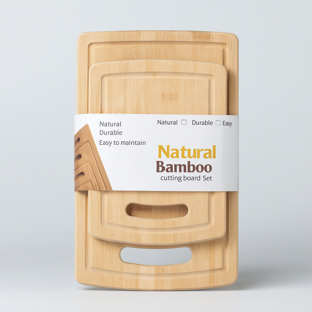 Ajoutez une touche naturelle et élégante à votre cuisine avec ce set de 3 planches à découper en bambou naturel de haute qualité 🌿