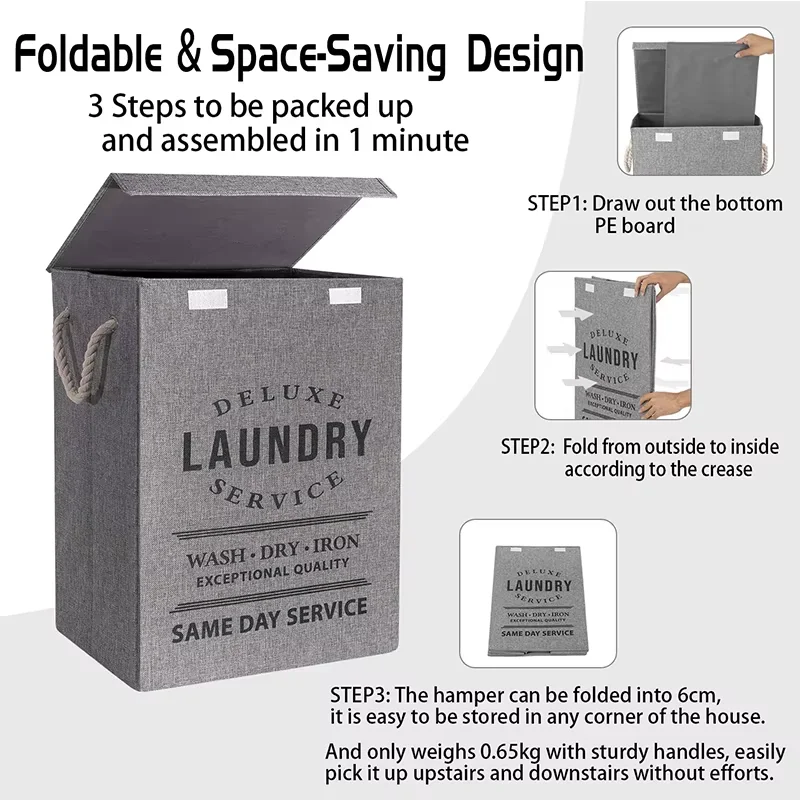 Panier à Linge Pliable 85L – Style “Laundry Service”