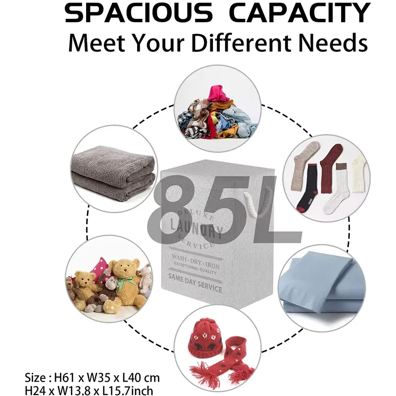• Grande capacité : 85 litres – Idéal pour les vêtements, serviettes, draps, jouets ou linge de maison.