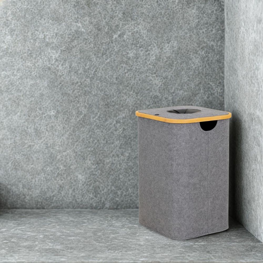 Alliez élégance, praticité et gain de place avec ce panier à linge haut format, parfait pour optimiser le rangement dans votre salle de bain ou votre buanderie. Son revêtement en tissu gris doux au toucher et sa finition bois claire en font un accessoire aussi esthétique que fonctionnel.
