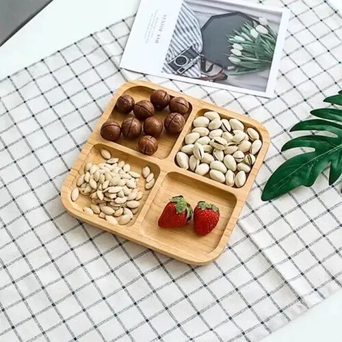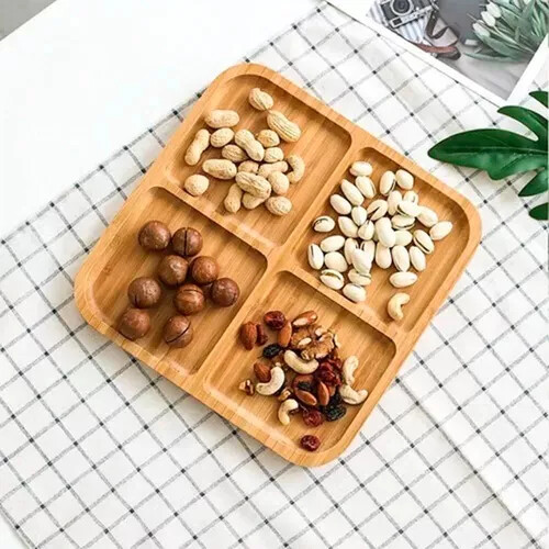 Plateau en Bambou à 4 Compartiments – Naturel et Élégant – 18cm x 18cm