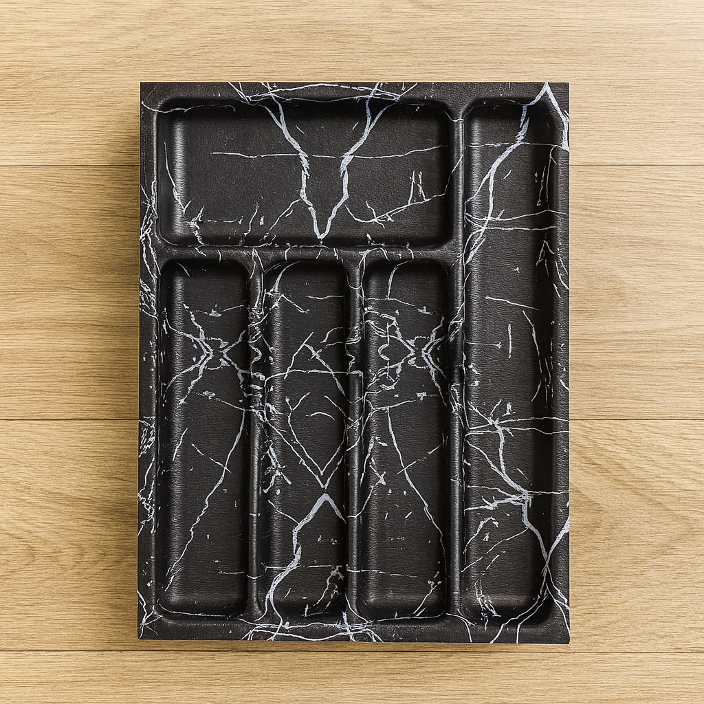 Organisez vos tiroirs avec élégance grâce à ce range-couverts pratique et robuste, conçu pour optimiser l’espace de rangement de votre cuisine. Avec ses 5 compartiments bien répartis, il permet de séparer facilement fourchettes, couteaux, cuillères et accessoires.