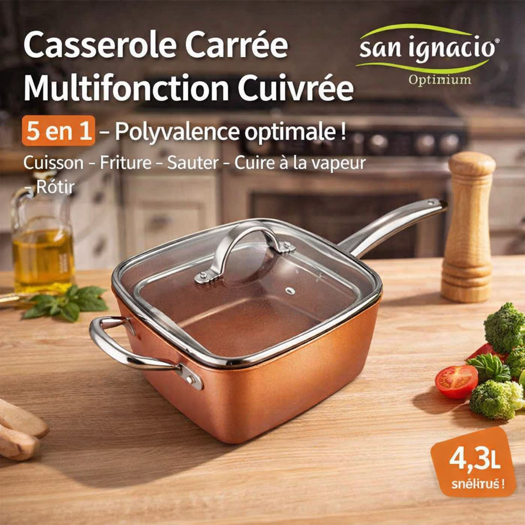 Transformez votre manière de cuisiner avec cette casserole carrée multifonction 5 en 1 San Ignacio ! Élégante, ultra-résistante et polyvalente, elle remplace plusieurs ustensiles de votre cuisine tout en apportant une touche cuivrée chic à votre plan de travail.