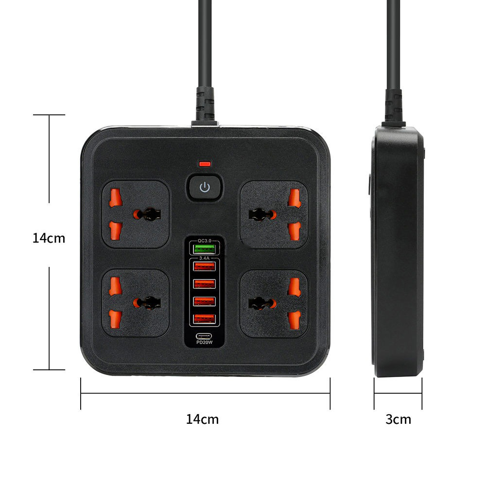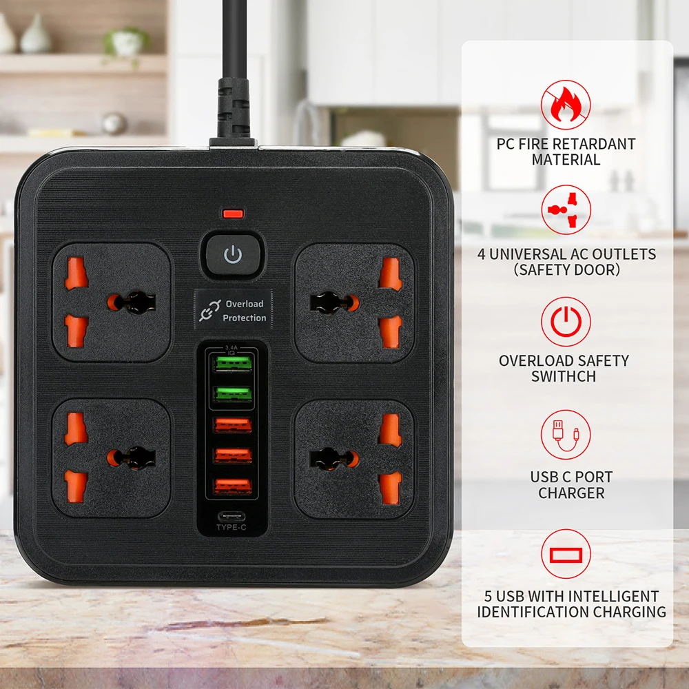 Multiprise Électrique Universelle 4 Prises + 5 USB (PD 20W & QC 3.0) – Station de Charge Rapide et Sécurisée