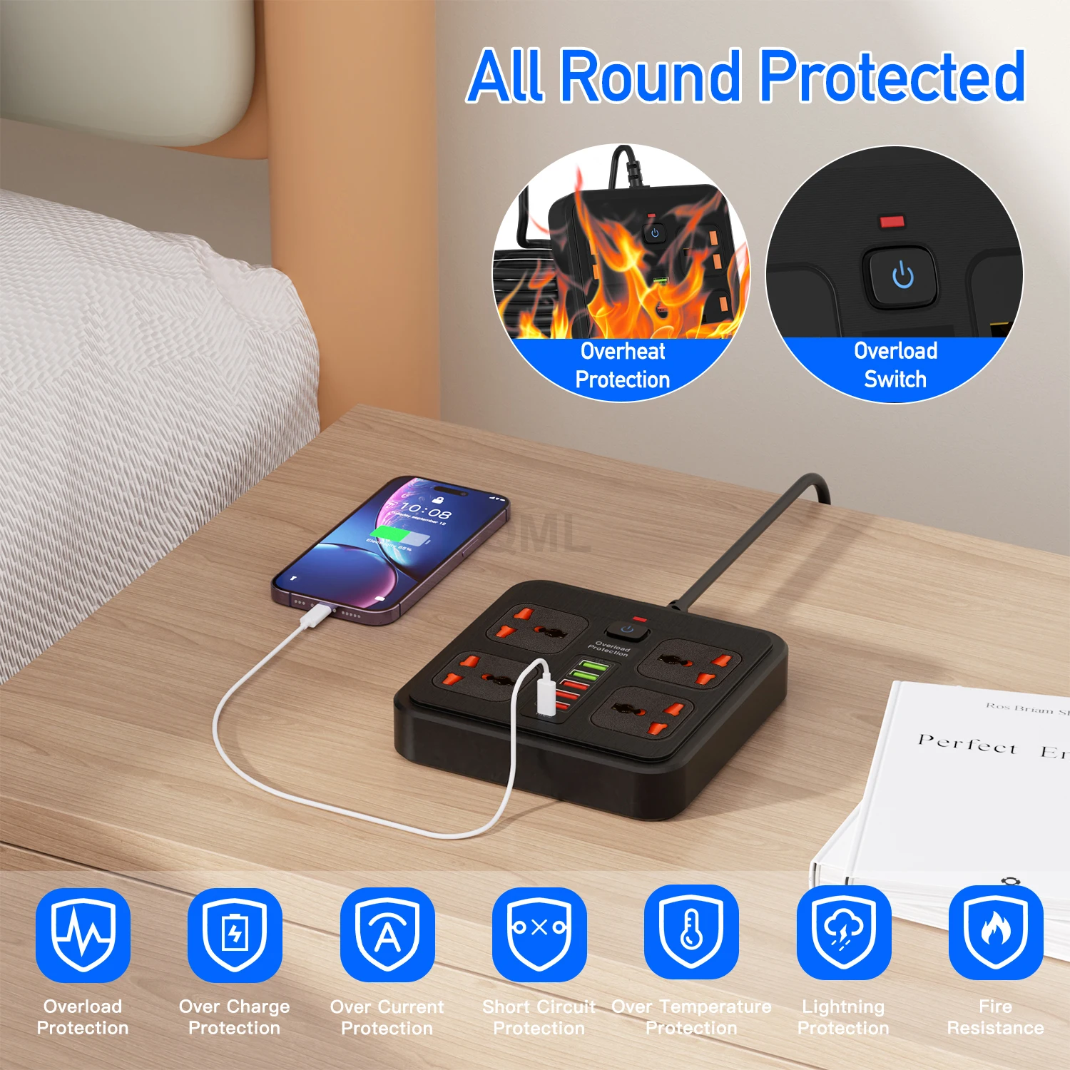 • Sécurité Maximale : Conçue en matériau PC ignifuge (retardateur de flamme), elle résiste aux très hautes températures. De plus, son interrupteur de sécurité contre les surcharges protège vos précieux appareils électroniques des fluctuations de courant.