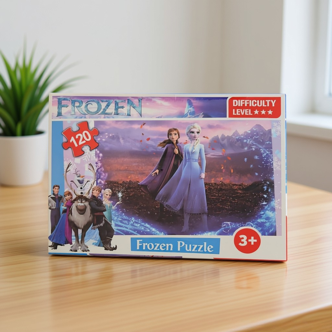 Ce puzzle de 120 pièces invite les enfants à reconstituer une scène captivante mettant en vedette Anna et Elsa dans un décor automnal riche en détails. Une activité calme et stimulante, idéale pour développer l’observation et la motricité fine tout en retrouvant l’univers d’Arendelle.