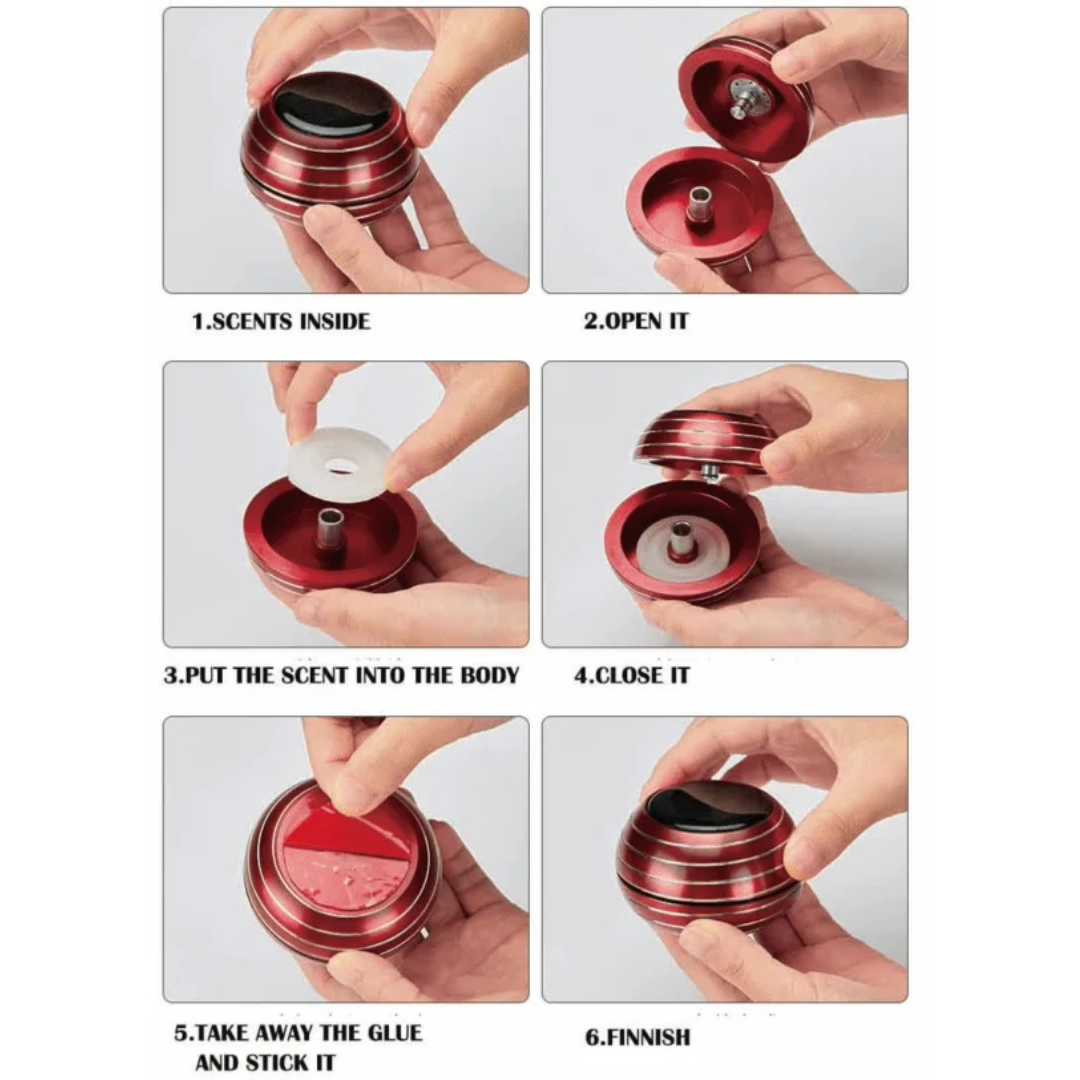 Ce diffuseur de parfum pour voiture allie technologie solaire et esthétique cinétique. Sa structure sphérique en métal, surmontée d’un panneau photovoltaïque, assure une rotation automatique et une diffusion homogène des senteurs pour un habitacle toujours frais, sans nécessiter de branchement.