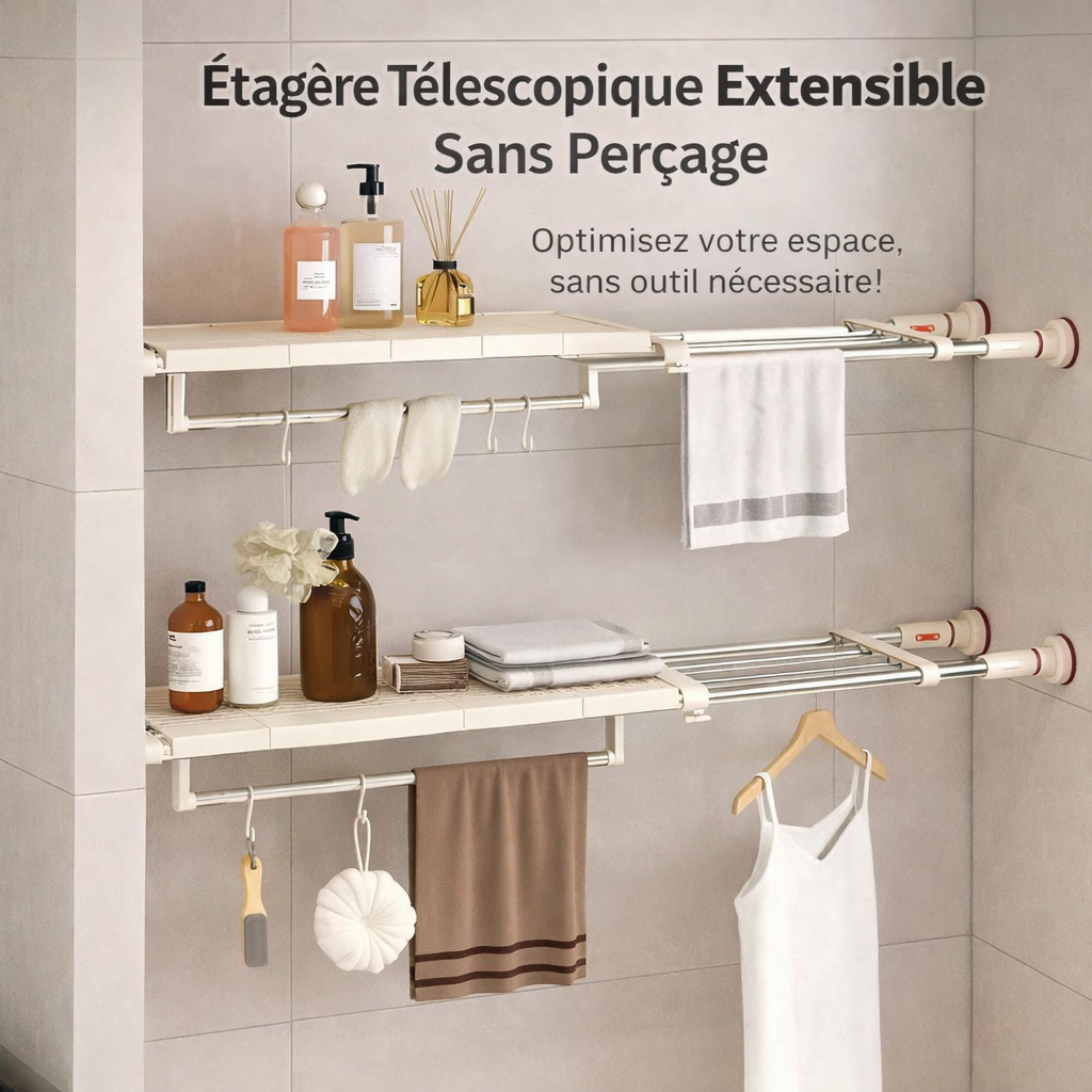 Investir dans cette étagère télescopique, c’est choisir la tranquillité d’esprit. C’est une solution économique et durable qui transforme instantanément un espace perdu en zone de stockage utile. Plus besoin d’acheter de nouveaux meubles coûteux ; optimisez ce que vous avez déjà avec élégance et efficacité. Un indispensable pour un intérieur “Quiet Luxury” où chaque chose a sa place.