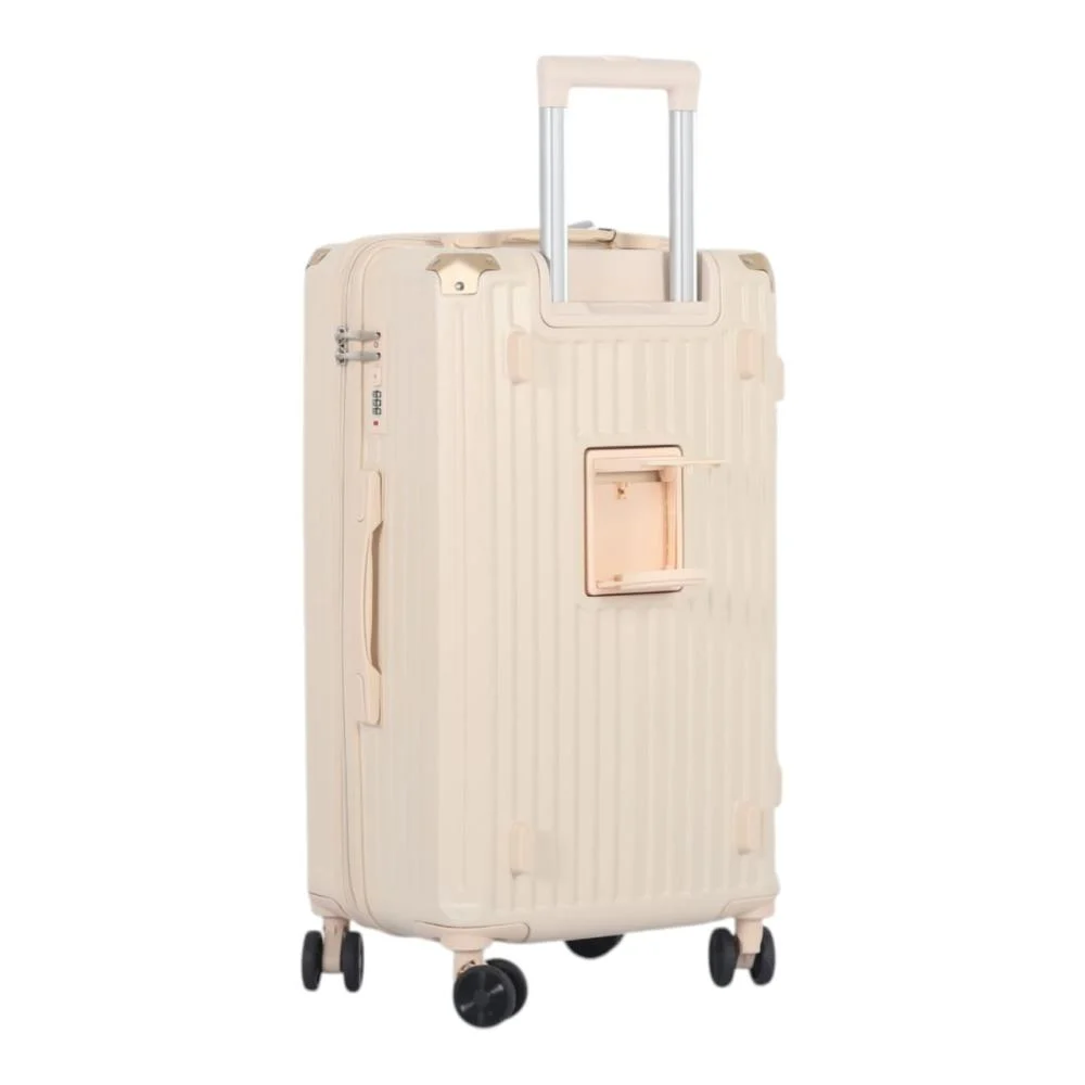 Valise Rigide Marron Clair – 4 Roues Doubles, Porte-Gobelet Intégré & Serrure TSA