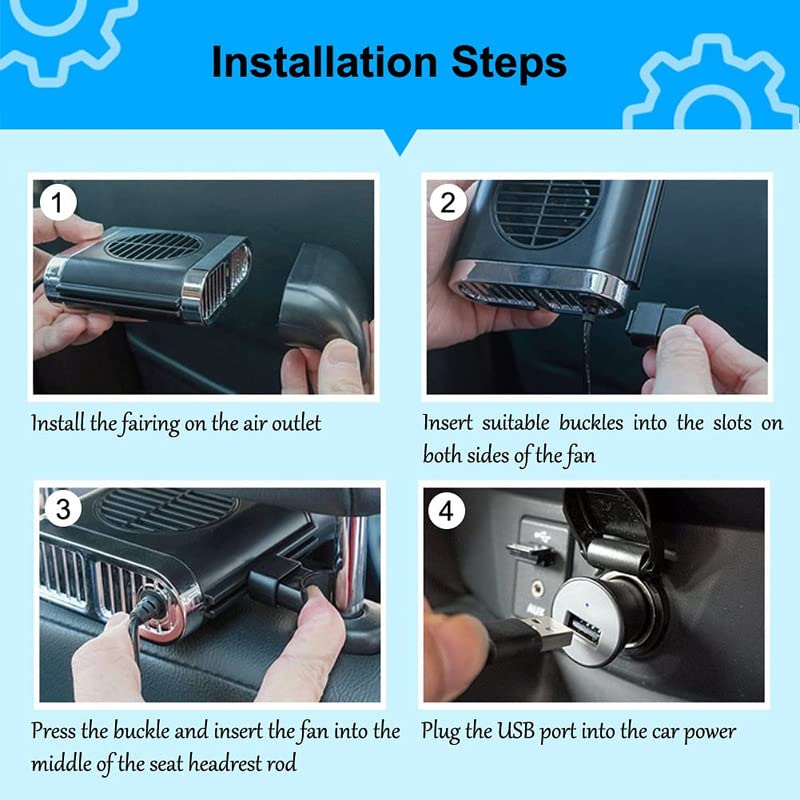 Ce ventilateur de siège pour voiture est la solution idéale pour un trajet plus frais et confortable. Conçu pour se fixer directement sur l’appuie-tête, il diffuse de l’air vers le dos afin d’éviter les sensations d’humidité, les vêtements collés ou les sièges brûlants.