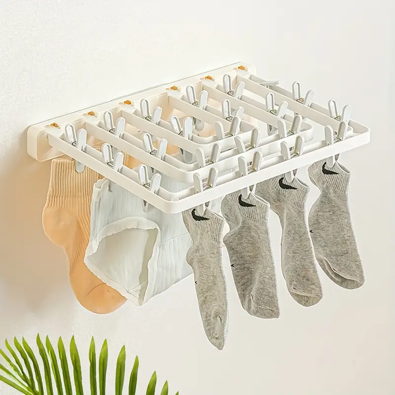 Séchoir Mural Pliable – 22 Pinces , Ultra Compact