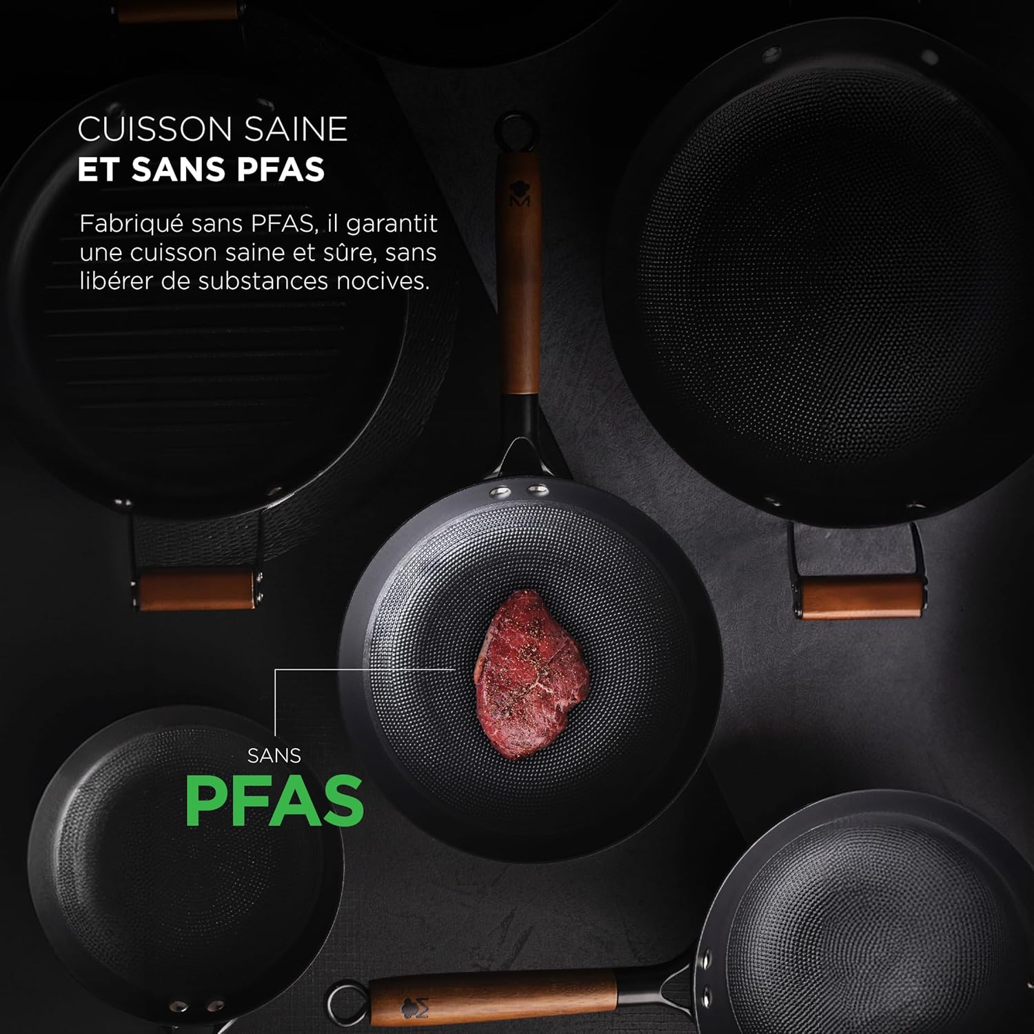 • Sans PFAS : cuisson saine, sans substances nocives
