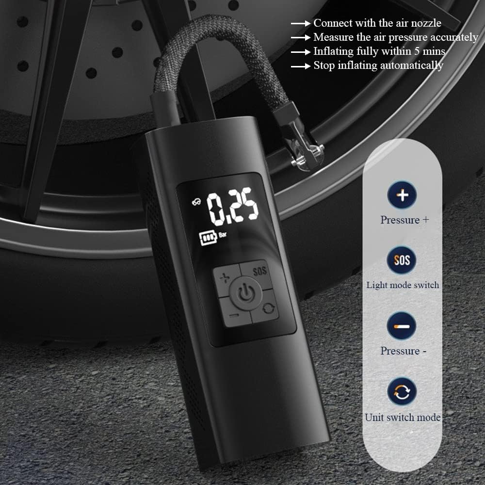 Compresseur d’Air Portable Digital – Gonfleur Électronique pour Pneus avec Affichage LED