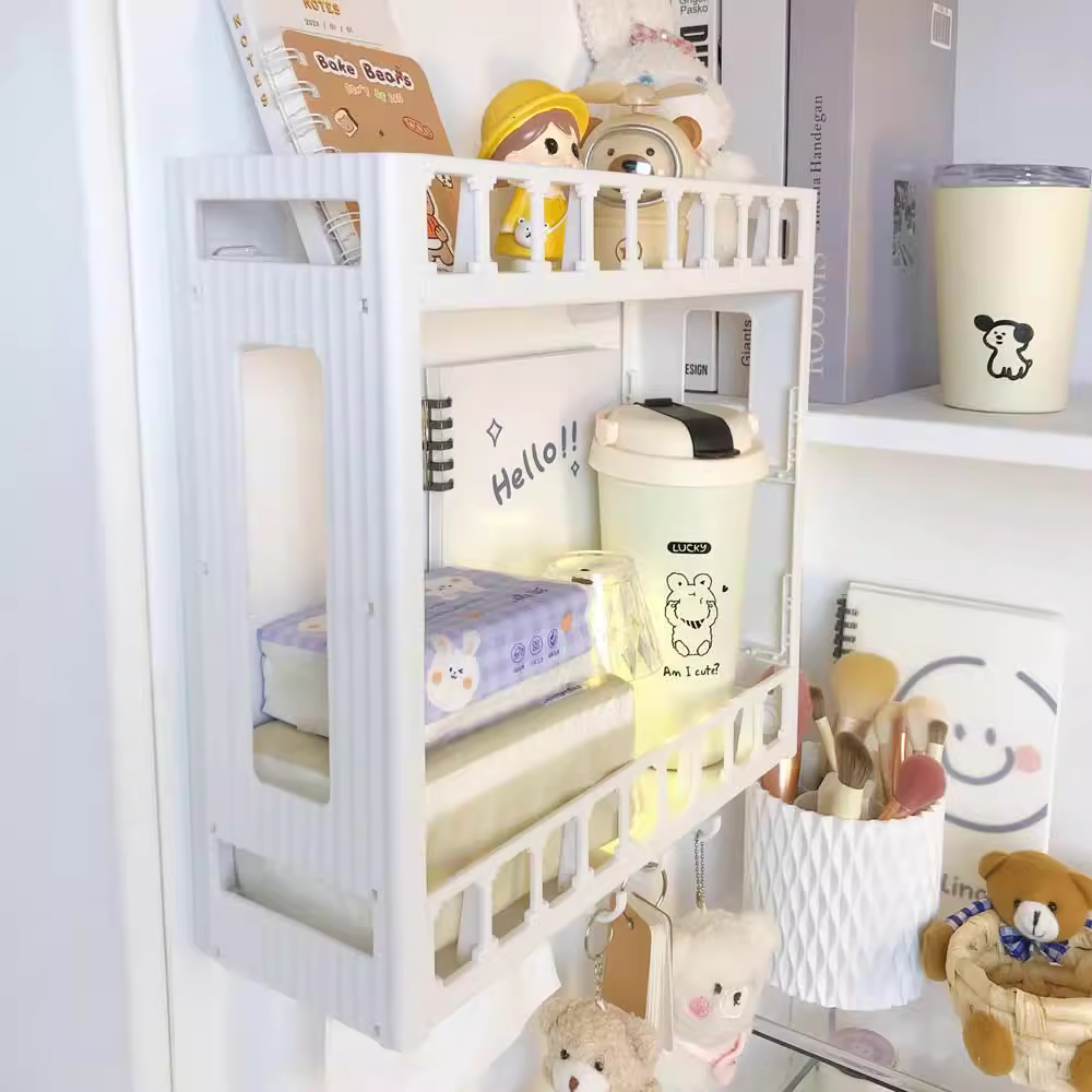 Étagère Murale 3 Niveaux – Adhésive, Porte-Mouchoirs & Crochets Intégrés – 30x33x10.5 cm